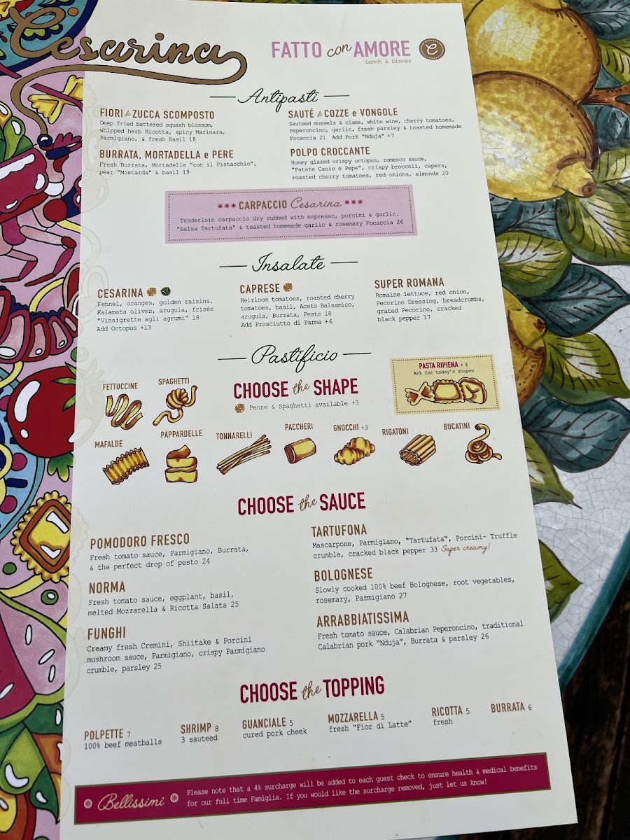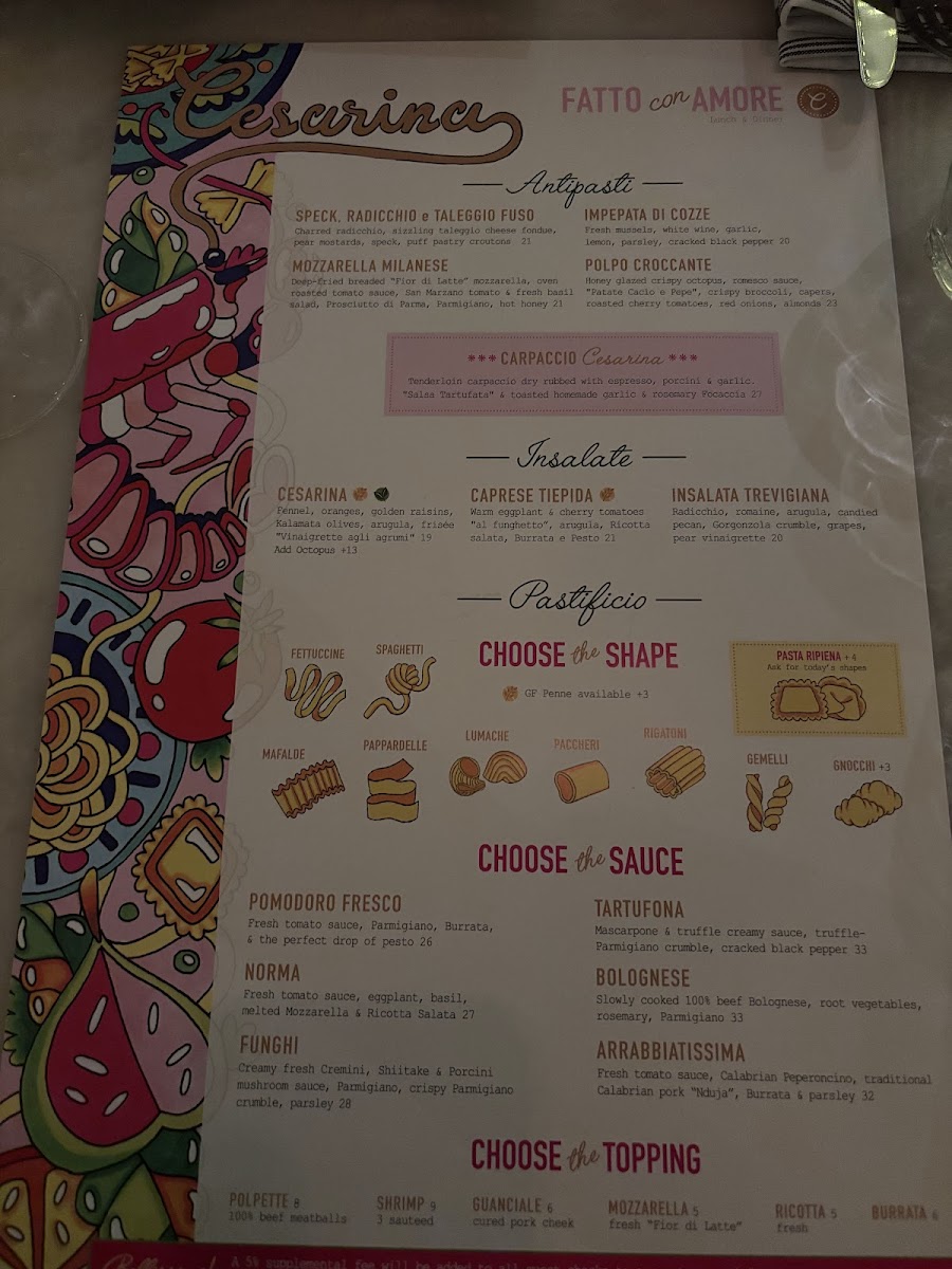 The menu at Cesarina offers a thoughtfully curated taste of Italian tradition presented with a modern touch. It leans toward refined yet approachable dishes, featuring fresh handmade pastas, comforting classics, and attentive twists that suit both casual dinners and special occasions.